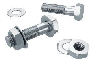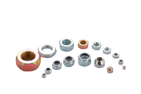 Nuts are fastening devices with a threaded hole, often used in conjunction with a bolt and washer to provide clamping force and prevent axial movement.
