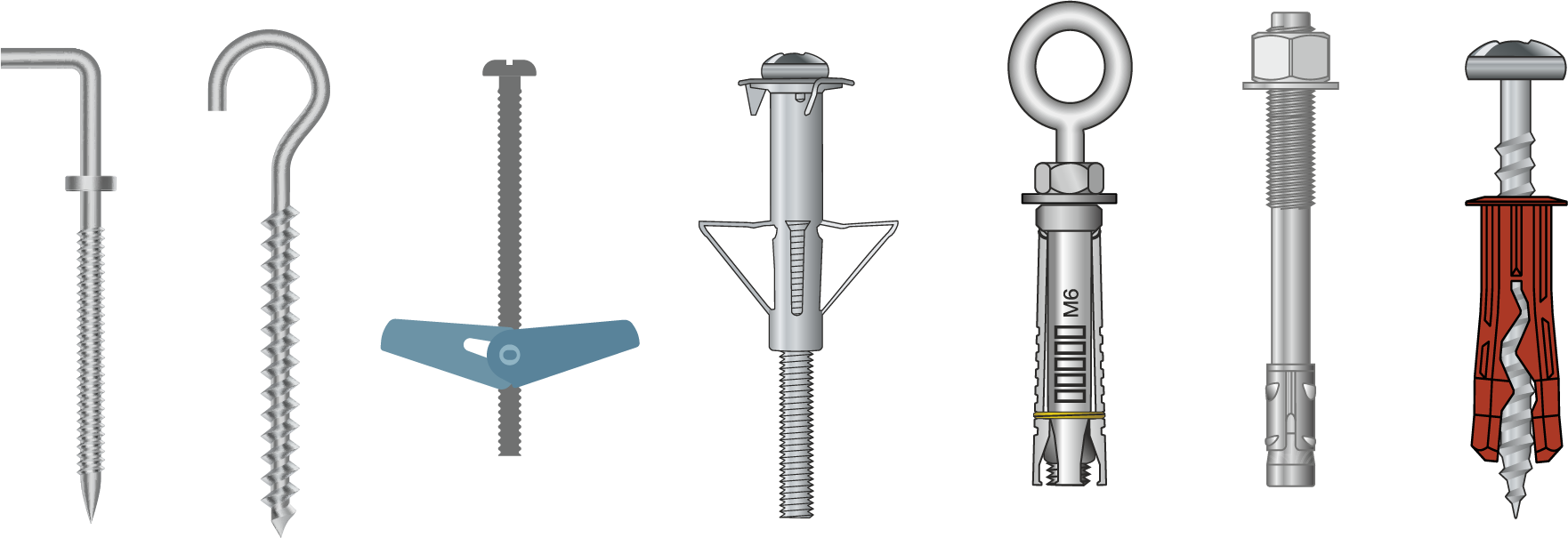 Anchors are generally used to connect something to a material like drywall or concrete. The name comes from anchors used on a ship which embed in the sea floor to keep the ship from moving.